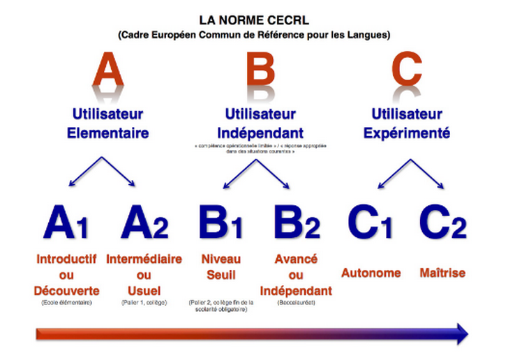 Il consiste en une échelle d’évaluation de la maîtrise d’une langue, avec 6 niveaux de A1 à C2 (élémentaire à expérimenté).
